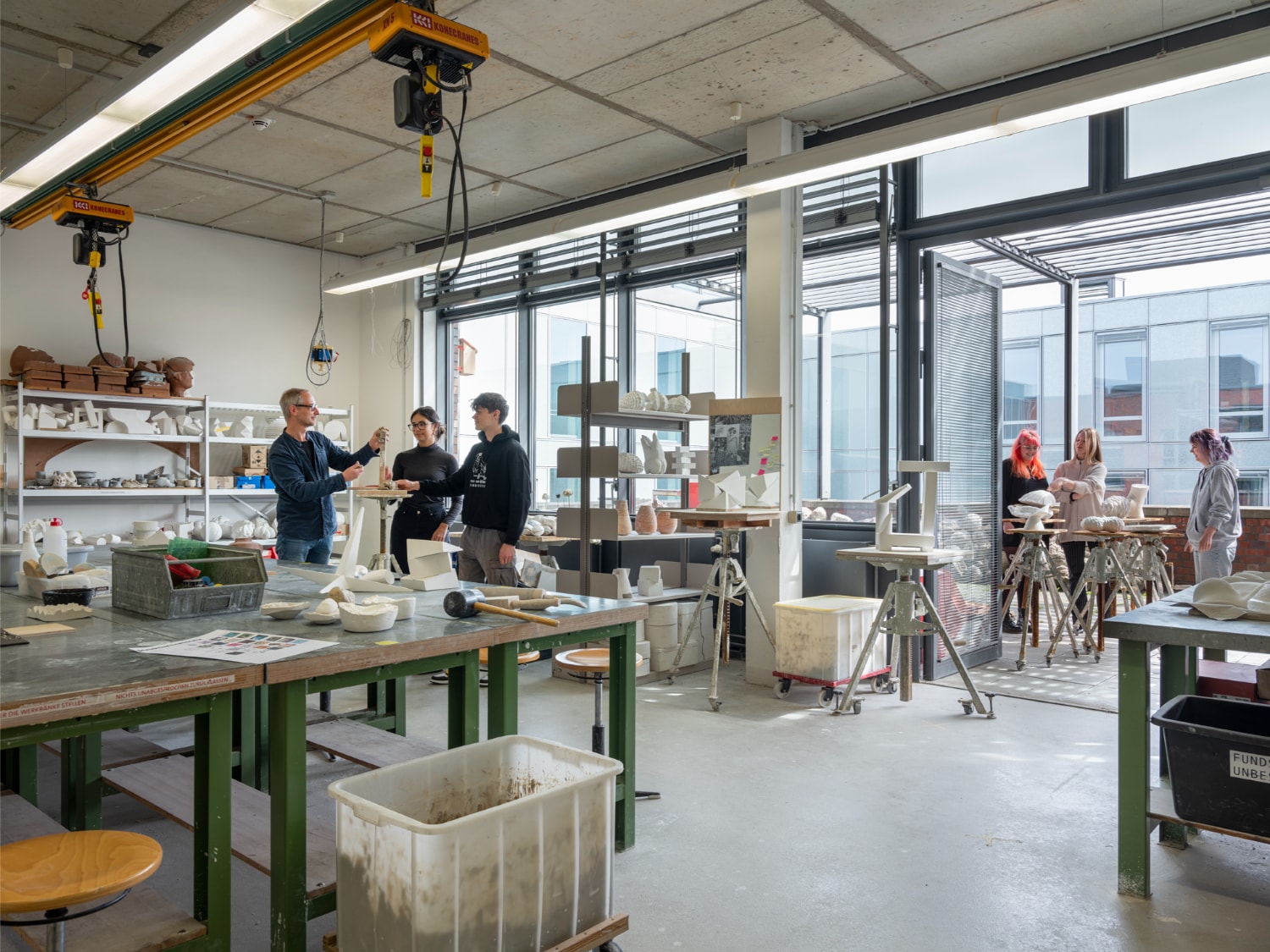 Nicht konkret. Das Studium beginnt mit den Projektwochen, in denen in der Regel ein Adobe–Anfängerkurs angeboten wird. Während des Semesters werden aber keine weiteren Kurse angeboten. Kenntnisse in den gängigen Grafikprogrammen werden zwar nicht vorausgesetzt, aber ihr solltet euch ohnehin darauf vorbereiten, euch diese im Selbststudium anzueignen. Ihr werdet nicht drum herum kommen, diese Programme schon im Grundstudium anzuwenden.